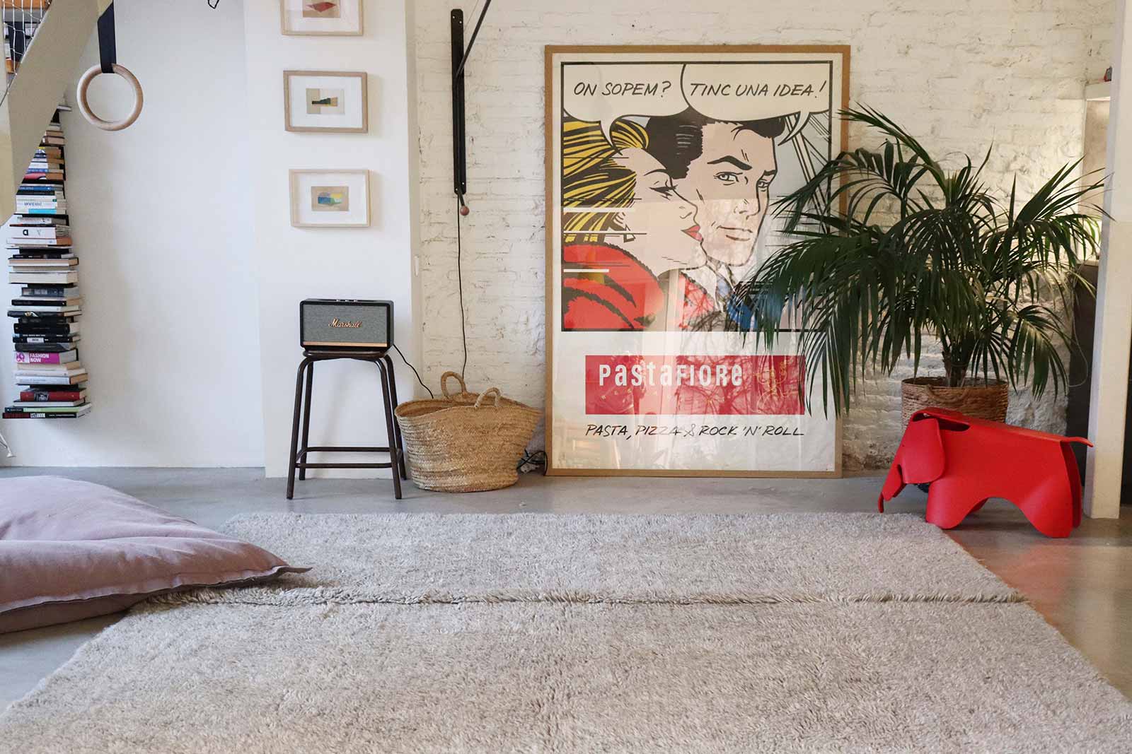 Le tapis Tundra de Lorena Canals est composé d’un doux poil de laine de 2 cm de long, interrompu par des rangées de poils plus longs qui se croisent. Il est disponible en blanc mouton uni ou en fils mélangés blanc mouton + gris mouton, ou blanc mouton + beige mouton, ce qui permet d’obtenir des nuances de couleurs légères et élégantes.